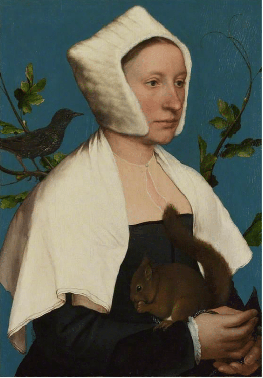 Hans Holbein the Younger, “A Lady with a Squirrel and a Starling,” about 1526-8