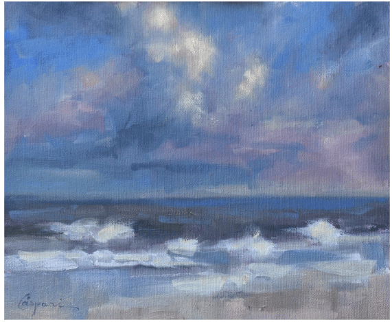 You can follow along as Kathleen teaches her method for painting dynamic seascapes in her video, Creating Dramatic Atmosphere in Landscapes.