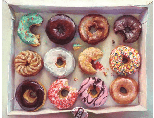 Known primarily for her portraits and figurative art, Judith is also well known for her still life paintings in which she depicts Americans’ eating habits (including her own, she is quick to point out with a laugh).