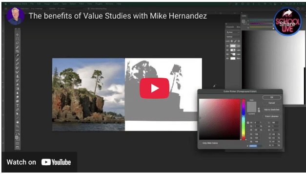 Follow along in a corresponding edition of Art School Live featuring renowned artist Mike Hernandez. Explore digital painting and how focusing on value studies—not just color—can transform your approach to painting and drawing.