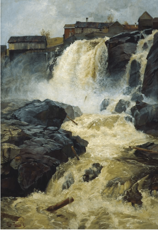 Frits Thaulow, Haugsfossen ved Modum (1883) Again it’s the water, not the buildings, that interests him (and with which he therefore fills the painting).
