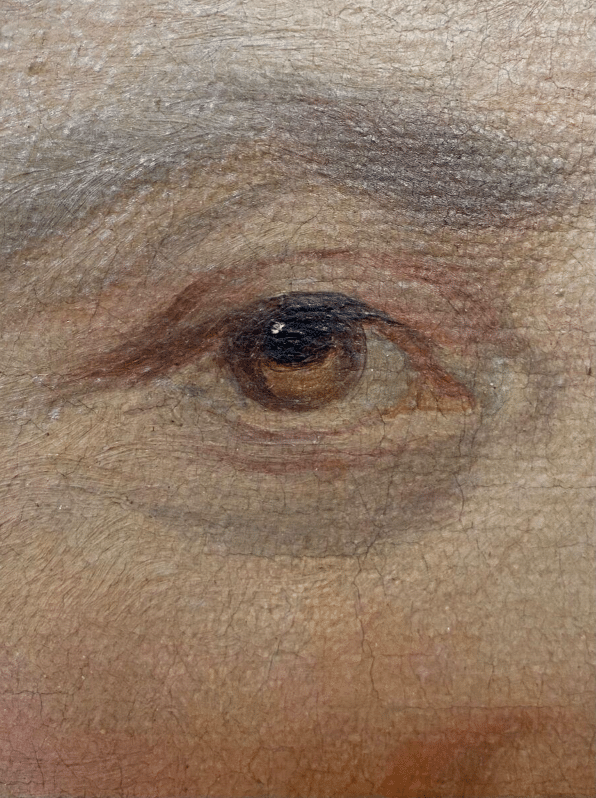 Where a portrait’s eyes are looking greatly influences how the portrait affects us. Painted eyes may be looking straight at us, beyond us, or seemingly right into (or through!) us, or a combination of all of these at once. Such differences may seem trivial, but they actually hold the power to define a painting’s very meaning and purpose, how we respond to the image that we see – even as it looks back at us.