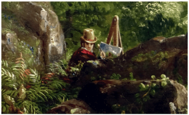 In addition to the many “hidden” meanings in this painting, Cole included a tiny self-portrait (it’s in the foreground, slightly right of center). But there’s much more of interest hiding here.