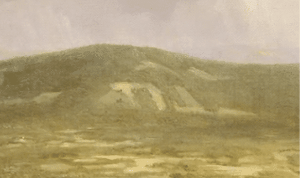 Nothing in Cole’s work is coincidental; his use of allegorical symbolism in his major paintings is well known. Why a question mark? Cole is registering his unease with the stark contrast and lack of integration between the “untouched, virgin land” (once emptied of its millions of prior inhabitants) and what “civilized man” is doing to it. Unnoticed for a hundred years, on the distant hillside Cole painted the three Hebrew letters that spell out the word for Almighty (Shaddai), the most frequently used and most reverential of the (pronounceable) Biblical names for God.