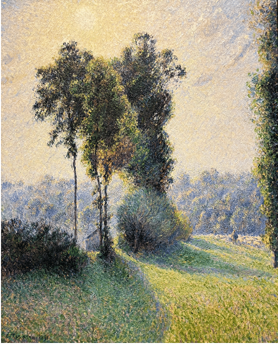 When Camile Pissarro painting this landscape of the Normandy countryside about 40 miles north of Paris, he was briefly yet deeply under the spell of pointillism.