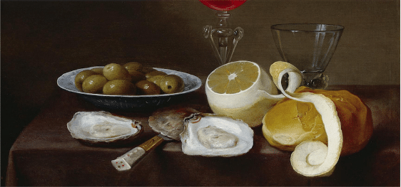 These depictions of oranges and peaches, cups, knives, and porcelain tableware, opened the way for subject matter consisting of simple, uncomplicated (non-allegorical) arrangements of common, ordinary objects raised to a higher level.