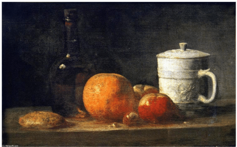 Manet, like many of his century, also owed something to 18th century French painter Jean Siméon Chardin. Renowned in his lifetime and by generations of artists who came after, Jean Siméon Chardin was primarily a painter of scenes from everyday life. But his approach to the still life, and its influence on 19th century French artist and admirers such as Henri Fantin-Latour (and later Manet and Cezanne) continues to win him his admirers in our own time.