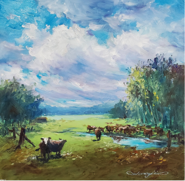 Great sky paintings lift us with a sense of the vastness and space that daily moves above our heads. A strong sky in a landscape painting, oil, watercolor, or acrylic, expresses airy light, motion, and not least of all mood. A great sky stops the viewer and draws them deeply in.