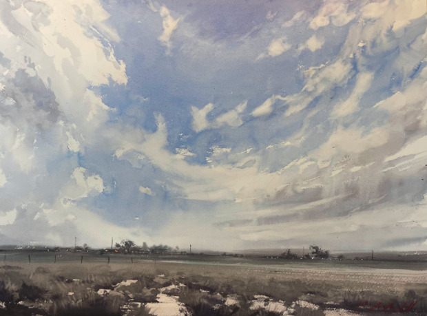 Kim Casebeer, Kansas Clouds, oil, 9×12 in.