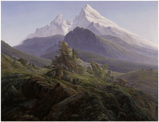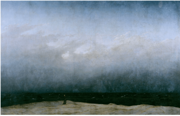At times called “the inventor of Romanticism” (which spans the late 1700s through the 1850s) Friedrich epitomizes the period. Friedrich, the Romantic artist par excellence, positions himself as an inward-looking pilgrim in pursuit of the mysterious and the mystical in nature and humanity. Romantic art and literature often serve as both windows into an imaginary world and mirrors of our longing to transcend the trivial and the ordinary and to embrace on one hand wholeness and on the other, the unknown.