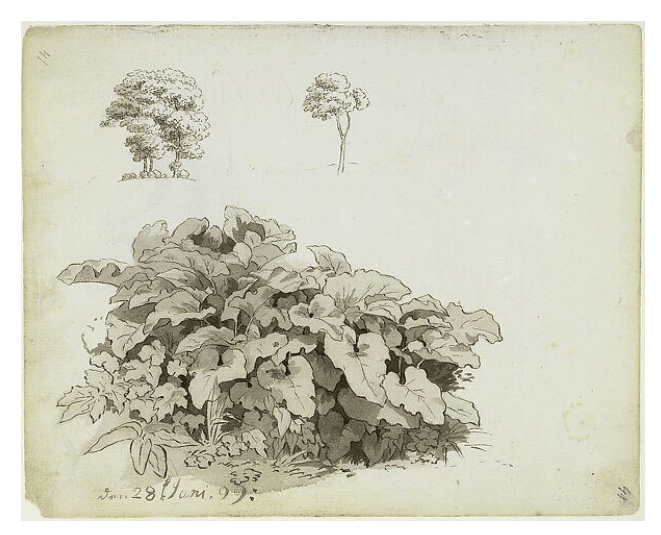 As a student of the academy, Friedrich made many studies from nature, which he thought of as “portraits” of trees and rocks and vegetation. He would use those sketches in studio paintings throughout his career.