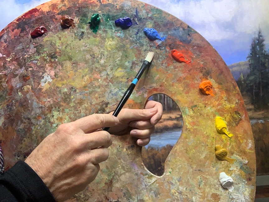 Cool and Warm Palette. It consists of a cool and warm version of each primary color, along with white. My current palette (I use Cobra by Royal Talens) includes Cadmium Yellow Lemon, Cadmium Orange, Cadmium Red Light, Madder Lake, Ultramarine Blue, Cobalt Blue, Permanent Green Deep, Yellow Ocher, Transparent Oxide Red, and Titanium White. This versatile palette allows me to mix and match a variety of limited palettes, depending on the specific subject matter I’m working on.