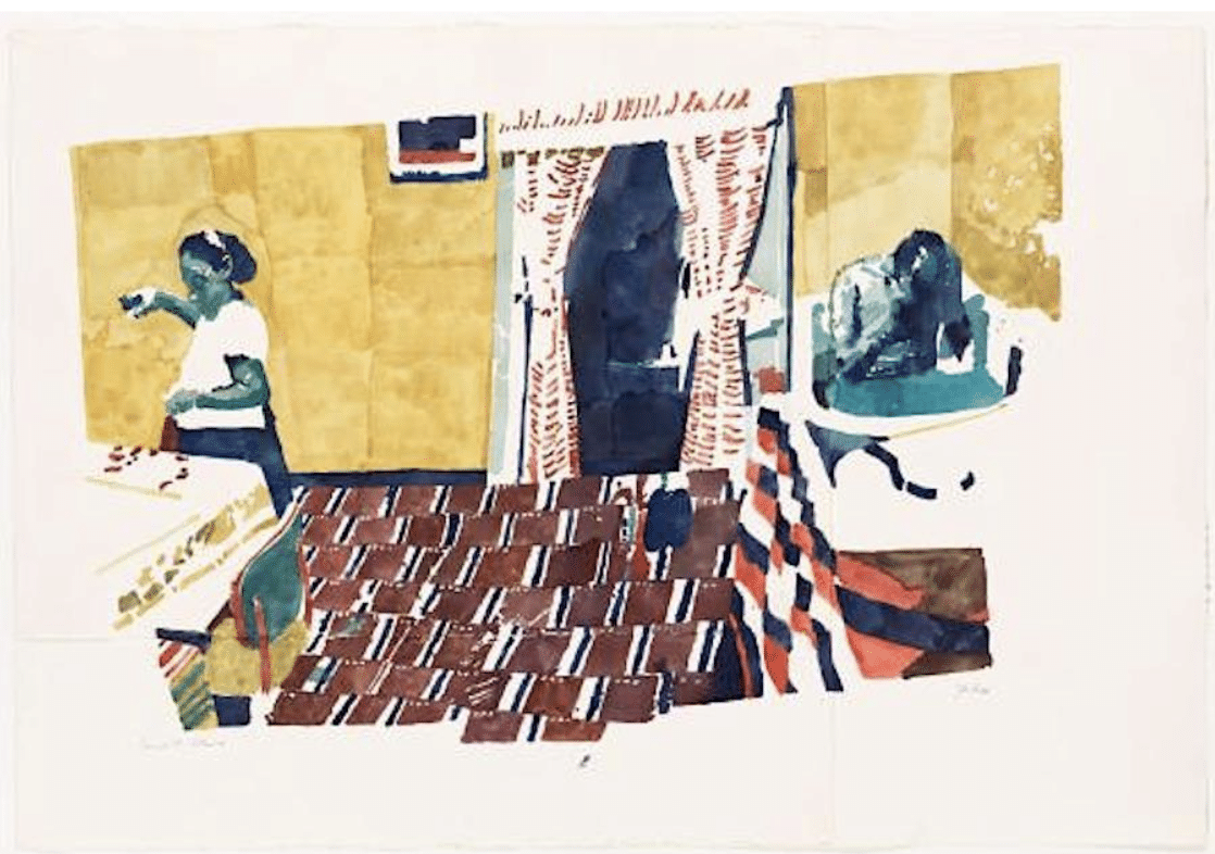 Richard Foster Yarde, American, Cunard Street, Interior II, 1980. Watercolor on white wove paper, three sheets overlapping, not joined. Harvard Art Museums/Fogg Museum, Arthur K. and Mariot F. Solomon Collection, 2021.214. © Estate of Richard Foster Yarde.