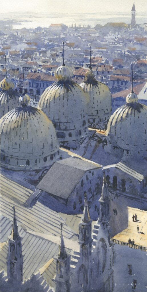 “Domes of San Marco” (watercolor, 20 x 10 in.) by Michael Reardon