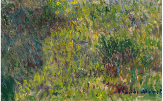Because of the way Monet laid down the paint, the angles of his brushstrokes make the grass sweep to the left and seemingly aspire to flow right up into the sky. The clouds pick up this movement and splash upward like a fountain before drifting over to the right on the breeze. There’s NO fussing over details or “accuracy” here. It’s all about getting life into it through color, movement, and light. It’s an excellent example of Monet’s carefree interpretations of nature, so characteristic of this artist, who once noted that he “would like to paint the way a bird sings.”