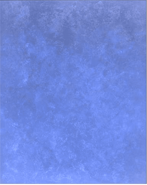 Ocean Blue #6 drops any reference to the objective world of cities, bridges, and fog, dissolving the physical world in washes of blue that evoke soothing, sunlit ocean depths without realistically rendering them. In the absence of the traditional elements of the ocean-scape or the landscape painting, the abstract artist must carefully manipulate colors and the distribution of shapes (or in this case, just values of a single color, blue, and subtle distributions of light, dark, and temperature) in a way that creates a balanced composition in its own right. It looks easy – until you really look at it and see what’s really going on.