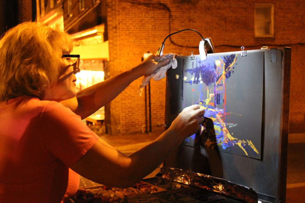 Maria Marino, shown here painting on location at Paint It! Ellicott City in Maryland, finds inspiration in a variety of subjects.