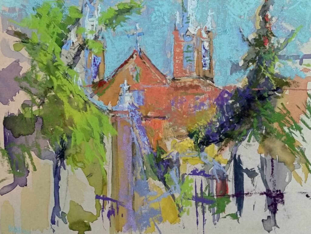 Maria Marino, “San Felipe de Neri Fundada,” 2017, pastel, 9 x 12 in., private collection, plein air