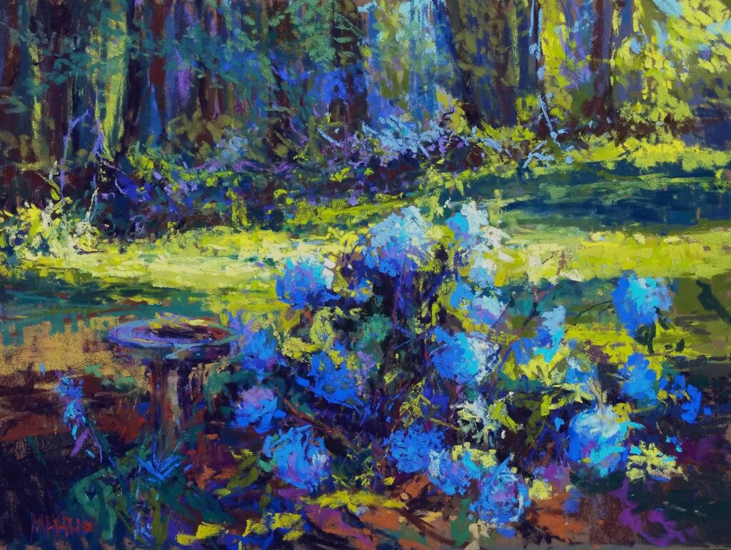 Maria Marino, “Late Afternoon in the Garden,” 2018, pastel, 12 x 16 in., Private collection, Plein air